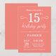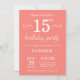 15th Birthday Invitation with Coral Background. Kids Birthday. Boy or Girl Bday Invite. 13th 15th 16th 18th 20th 21st 30th 40th 50th 60th 70th 80th 90th 100th, Any age. For further customisation, please click the "Customise it" button and use our design tool to modify this template.