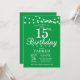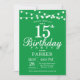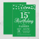 15th Birthday Invitation with String Lights. Green Background. Kids Birthday. Boy or Girl Lady Elegant bday Invite. 13th 15th 16th 18th 20th 21st 30th 40th 50th 60th 70th 80th 90th 100th, Any age. For further customisation, please click the "Customise it" button and use our design tool to modify this template.