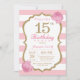 15th Birthday Invitation. Pink and Gold. Gold Glitter. Pink and White Stripes. Pink Floral Flower. Kids Birthday. Girl Lady Teen Teenage Birthday Party. For further customisation, please click the "Customise it" button and use our design tool to modify this template.