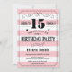 15th Birthday Invitation Pink and White Stripes