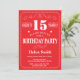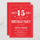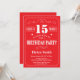 15th Birthday Invitation Red and White Typography. Red and White Background. Kids Birthday. Male Men or Women Birthday. Kids Boy or Girl Lady Teen Teenage Bday Invite. 13th 15th 16th 18th 20th 21st 30th 40th 50th 60th 70th 80th 90th 100th. Any Age. For further customisation, please click the "Customise it" button and use our design tool to modify this template.