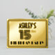 The front of this 1920s/1930s style inspired fifteenth birthday party/celebration foil invitation card design features an editable name, an intricate art deco look inspired number “15th”, the message “BIRTHDAY PARTY”, and a multi-line border. The back features personalised details about the event, such as the date, time, location, and any other information that may be relevant. Elegant, luxurious, personalised invitations like these might be used to invite attendees to a birthday gathering/party being held to celebrate somebody’s 15th birthday. [~Z0000594]