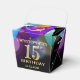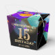 15th Birthday Party Black and Gold Colourful Balloons and Confetti Favour Box. For further customisation, please click the "Customise it" button and use our design tool to modify this template.