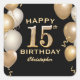 15th Birthday Party Black and Gold Balloons Square Sticker