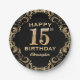 15th Birthday Party Black and Gold Glitter Frame Paper Plate