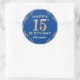 15th Birthday Party Blue and Gold Glitter Frame Classic Round Sticker