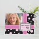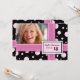 15th Birthday Party Custom Photo Invitations with fun and dern bright pink and black polka dots gift wrap pattern, fully customisable with your photo and birthday party details, a unique and stylish invitation for a girl's birthday party.