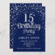 15th Birthday Party - Navy & Silver Invitation