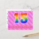 15th Birthday: Pink Stripes & Hearts, Rainbow 15 Postcard