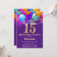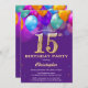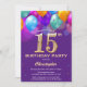 15th Birthday Purple and Gold Colourful Balloons Invitation