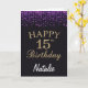 15th Birthday Purple Black and Gold Glitter Card