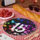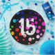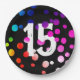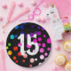 Neon rainbow dot pattern on black background for 15th birthday party.