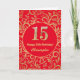 15th Birthday Red and Gold Floral Pattern Birthday Card. For further customisation, please click the "Customise it" button and use our design tool to modify this template.