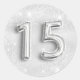 A faux silver looking background decorated with faux glitter dust.  Number 14 written with a balloon style font.