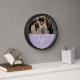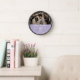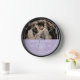 Simple outline heart stone effect line art graphics crystal purple and white add your own photo 15th Wedding Anniversary clock. Customise with your own 15th-anniversary couple's name, year of their wedding, and year of anniversary, plus add a landscape photograph of your anniversary couple. The fifteenth wedding anniversary is associated with the gemstone crystal and the heart symbolises love. Graphics and design by Sarah Trett for www.mylittleeden.com and www.mylittleedenweddings.com on Zazzle.