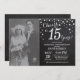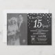 15th Wedding Anniversary with custom photo. Chalkboard Black and Silver Invitation. Fifteen Wedding Anniversary. Chalkboard Black and Silver Glitter Diamond Background. Silver Confetti. Adult Birthday. Woman or Man Male Birthday Party. For further customisation, please click the "Customise it" button and use our design tool to modify this template.
