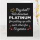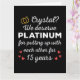 'Crystal? We deserve Platinum for putting up with each other for 15 Years' quote for a couple who got married 15 years ago or a couple renewing wedding vows on their crystal anniversary.