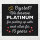 'Crystal? We deserve Platinum for putting up with each other for 15 Years' quote for a couple who got married 15 years ago or a couple renewing wedding vows on their crystal anniversary.