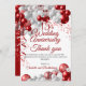 A glamourous 15th wedding anniversary thank you card. This elegant red wedding anniversary thanks contains a celebration balloon design. Fully customise the text the match your own event.