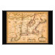 This poster print features a restored reproduction of a Seventeenth Century Colonial Map of New England and New York circa 1676 by Francis Lamb, London. This map includes descriptions of locations of Native American "Indian" tribal communities.