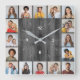 16 Photo Collage Light Grey Faux Wood Fence Square Wall Clock