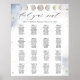 Elegant Wedding or special event seating chart with beautiful watercolor sliver and gold celestial scene with moons phases, dainty stars and graceful modern hand written calligraphy elements. Delicate blend of silver, grey, gold, white and blue grey watercolor hues and gold foil details. Easy to fill in template with space for 16 seating tables or less. For events with less tables, simple erase the characters from text boxes of bottom tables that you don't need. Many size options available. Easy to frame or glue/staple onto inexpensive MDF.