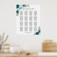 Make your wedding seating arrangements a breeze with this gorgeous 16 table seating chart! The rustic boho chic design features hand painted watercolor roses in shades of teal, turquoise, aqua, and cyan, along with lush eucalyptus leaves and garden foliage. With seating assignments for up to 160 people and 10 seats per table, our chart is the perfect addition to your big day. And with an elegant script calligraphy title and space for the names of the couple and wedding date at the bottom, this seating chart is a beautiful keepsake to cherish for years to come. Get ready to impress your guests with this must-have wedding accessory!