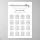 Less is more, this simple wedding seating chart will directly express your personality and give your guests clear information. Make a big first impression with this minimalist vertical black and white reception sign, perfect for an elegant and classic wedding. You can add the background colour. Just click the customise further link, shown under the text personalisation area on the right, and choose your custom colour background. This poster shows the organisation of the guests sitting by the tables and includes enough room for up to about 120-130 guests. Make room for more (or less) guests by clicking the "customise" button and decrease or increase the size of the font.