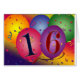 Big colourful balloons with confetti and rainbow coloured background with 16 in the balloons. Perfect design for your 16th birthday party favours / mailings.