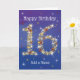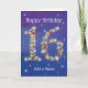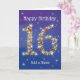 16 in Stars - Age Number - Sixteenth Birthday Card - Blue Background - Customizable Text