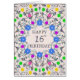 16th Birthday card. A glorious abstract pattern with flowers and diamonds. A very pretty, feminine, and stylish way to say 'Happy Birthday'. An unusual design that stands out. Send your birthday wishes in an elegant and eloquent way. All the diamonds on this card are printed.