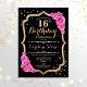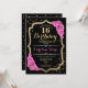 16th birthday celebration invitation. Elegant black design with faux glitter gold and pink roses. Features stylish script font and confetti. Perfect for an elegant birthday party. Can be customised into any age.