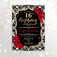Elegant red black white design with faux glitter gold. Features damask pattern and red roses. Perfect for an elegant birthday party.