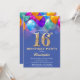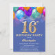 16th Birthday Blue and Gold Colourful Balloons Invitation