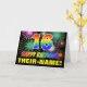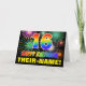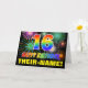 The front of this fun, colorful, and cheerful birthday themed greeting card design features a large number "16" and the message "HAPPY BIRTHDAY,", both having a rainbow spectrum gradient inspired pattern coloring, along with a bold yellow personalized recipient name. The front also has a multicolored background pattern inspired by bursting celebratory fireworks. The inside features a customizable birthday greeting message, or could perhaps be cleared and left blank if a message is to be written by hand instead. An exciting customizable birthday card like this might be a fun way to send a message celebrating somebody’s sixteenth birthday. [~Z0000471]