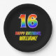 16th Birthday: Bold, Fun, Simple, Rainbow 16 Paper Plate