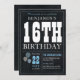 16th Birthday Chalkboard Blue Balloon Rustic Chic Invitation