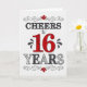 Hints of red with black and white create a cheerful birthday card for the teen turning sixteen. Well suited for either gender and a great inside message for the age group.