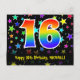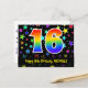 16th Birthday: Fun Stars Pattern, Rainbow 16, Name Postcard