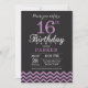 16th Birthday Invitation with Black and Purple Chevron. Chalkboard. Kids Birthday. Boy or Girl Bday Invite. For further customisation, please click the "Customise it" button and use our design tool to modify this template.