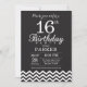 16th Birthday Invitation with Black and White Chevron. Chalkboard. Kids Birthday. Boy or Girl Bday Invite. For further customisation, please click the "Customise it" button and use our design tool to modify this template.