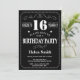 16th Birthday Invitation Black and White Typography. Chalkboard. Black and White Background. Adult Birthday. Male Men or Women Birthday. Kids Boy or Girl Lady Teen Teenage Bday Invite. 13th 15th 16th 18th 20th 21st 30th 40th 50th 60th 70th 80th 90th 100th. Any Age. For further customisation, please click the "Customise it" button and use our design tool to modify this template.