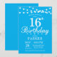 16th Birthday Invitation with String Lights. Blue Background. Kids Birthday. Boy or Girl Lady Elegant bday Invite. 13th 15th 16th 18th 20th 21st 30th 40th 50th 60th 70th 80th 90th 100th, Any age. For further customisation, please click the "Customise it" button and use our design tool to modify this template.