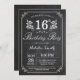 16th Birthday Invitation with Rustic Chalkboard Background and Floral Flower Pattern, Black and White. Adult Birthday. Male Men or Women Birthday. Kids Boy or Girl Lady Teen Teenage Bday Invite. 13th 15th 16th 18th 20th 21st 30th 40th 50th 60th 70th 80th 90th 100th. Any Age. For further customisation, please click the "Customise it" button and use our design tool to modify this template.