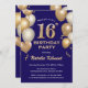 16th Birthday Navy Blue and Gold Glitter Balloons Invitation