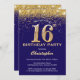 16th Birthday Navy Blue and Gold Glitter Confetti Invitation