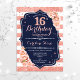 16th Birthday - Navy Rose Gold and White Stripes Invitation