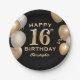 16th Birthday Party Black and Gold Balloons Paper Plate