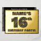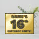 The front of this bold sixteenth birthday celebration/party foil invitation card features a customisable name, a large number “16th”, the message “BIRTHDAY PARTY!”, and a border, all featuring a rustic, yet elegant, faux wood grain appearance inspired pattern. The back features personalised details about the event, such as the date, time, place, and any other information that may be useful. Customisable invitations like these might be used to invite guests to a birthday party/gathering being held to honour somebody’s 16th birthday. [~Z0000595]