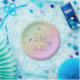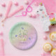 A celebration rainbow of colours, pink flowers and lavender butterflies are featured on these pretty paper plates for a girls 16th birthday party.